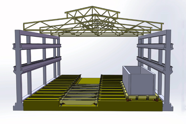 該運輸系統由1300t電動平車及1520t電動擺渡平車組成,是為客戶特殊工藝流程而開發的產品,在客戶工藝流程中占據了重要位置,替代以前落后生產工藝,用階段式分批量實現投料、控料、卸料。 該平車免維護運行,能夠實現1300t物料平穩搬運,在車間橫向和縱向穿梭;全車精準定位,過軌精度控制在±0.5mm。 整車靜音設計,噪音控制在45分貝以內,平車空載、重載運行噪聲相對于傳統設備減少50%以上。平車各個
